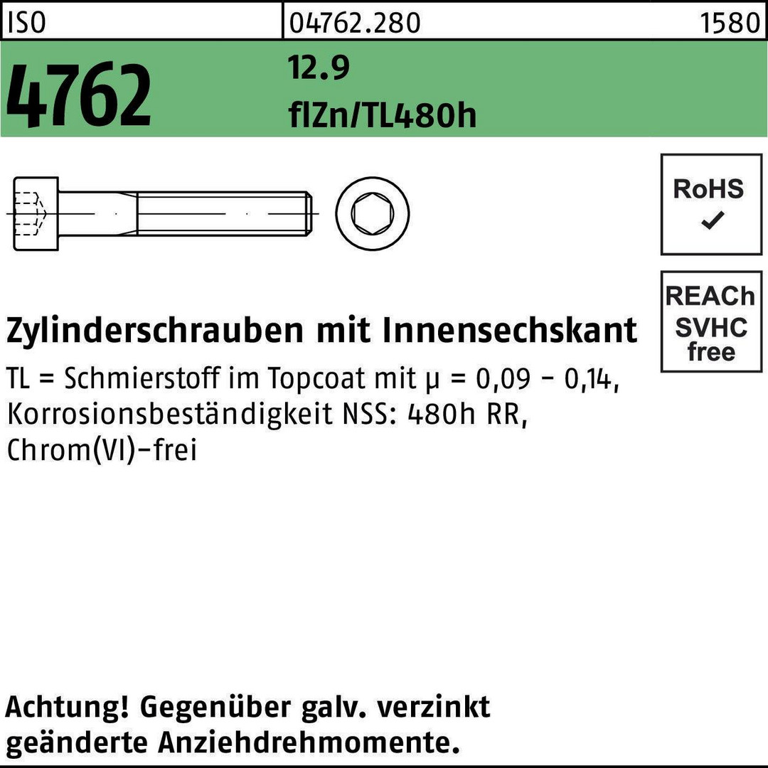 ISO 4762 12.9 flZn/TL 480h (zinklamellenbesch.) Zylinderschrauben mit Innensechskant - Abmessung: M 8 x 20 VE=S (200 Stück )
